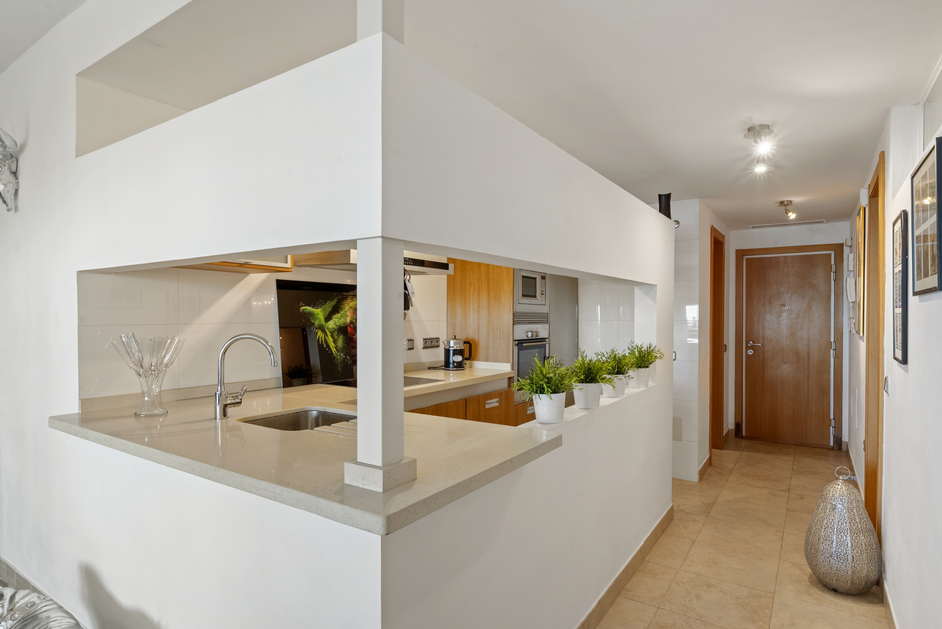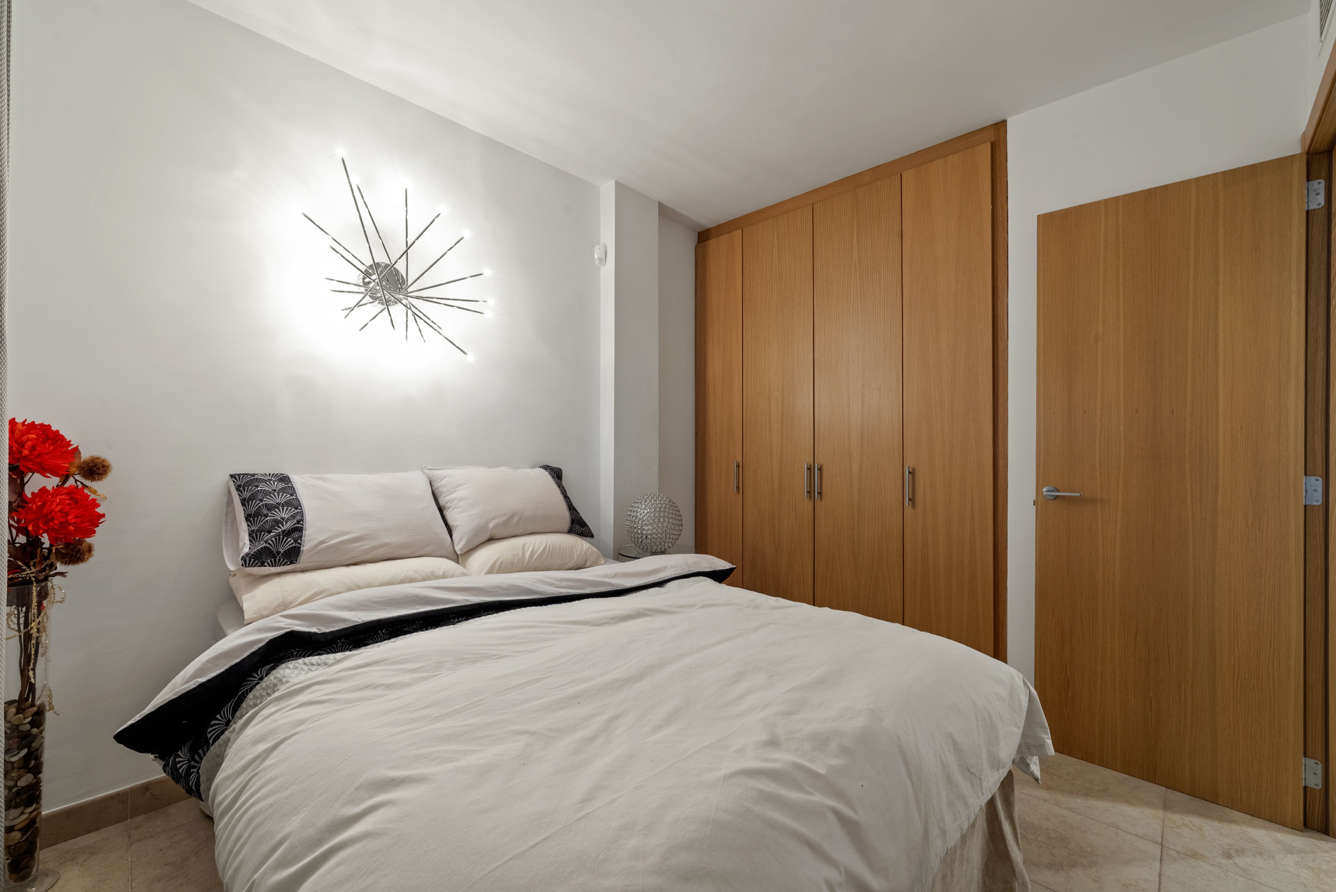 Accommodation comprises two spacious bedrooms and two modern bathrooms, including one en-suite. The property is partly furnished in a stylish manner (with some furnishings not included), and features a fully fitted and equipped kitchen, a comfortable living room, and fitted wardrobes for ample storage. Additional highlights include air conditioning, double glazing, electric blinds, a covered terrace, and an advanced alarm system. The apartment is in excellent condition and forms part of a secure, gated community with lift access.