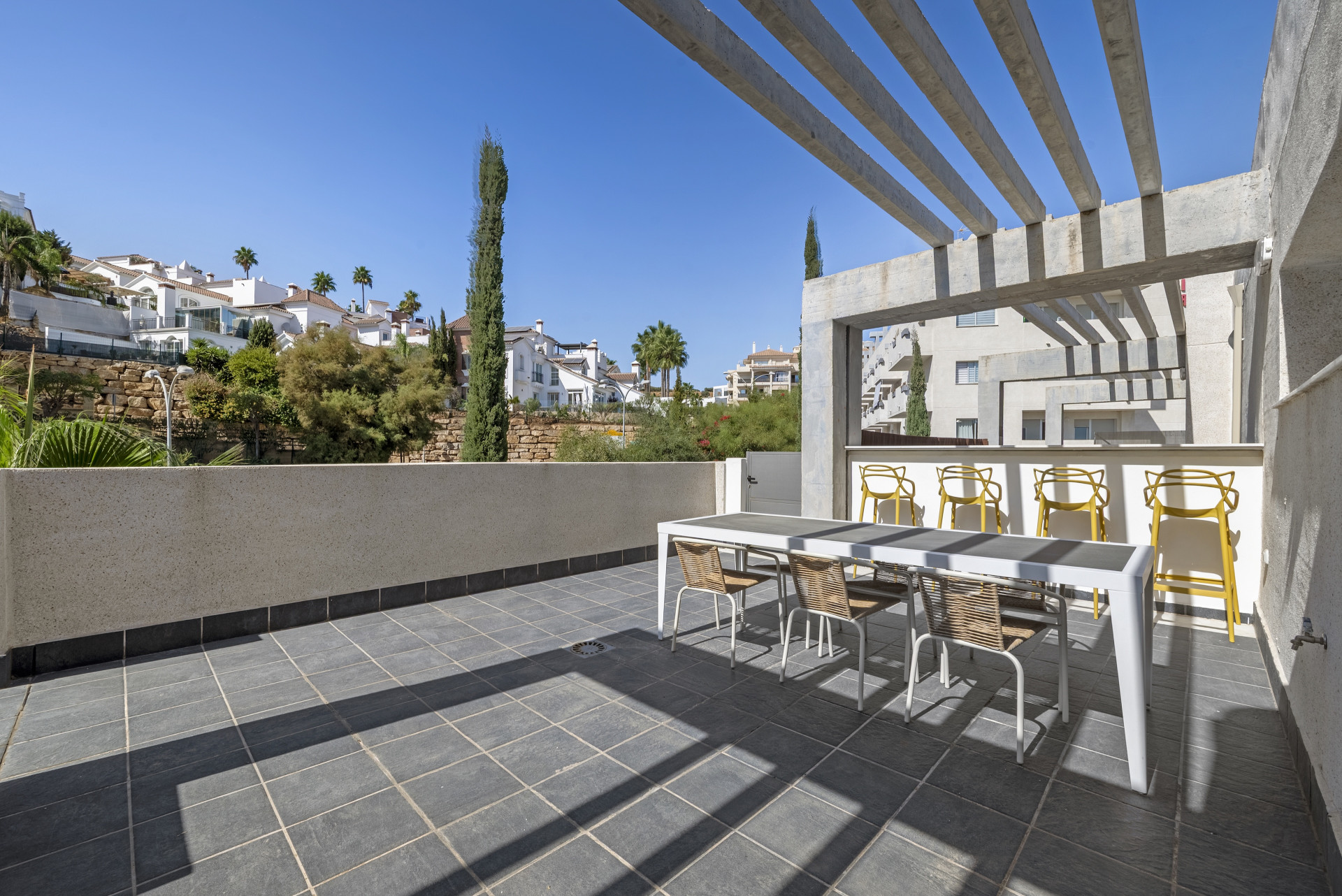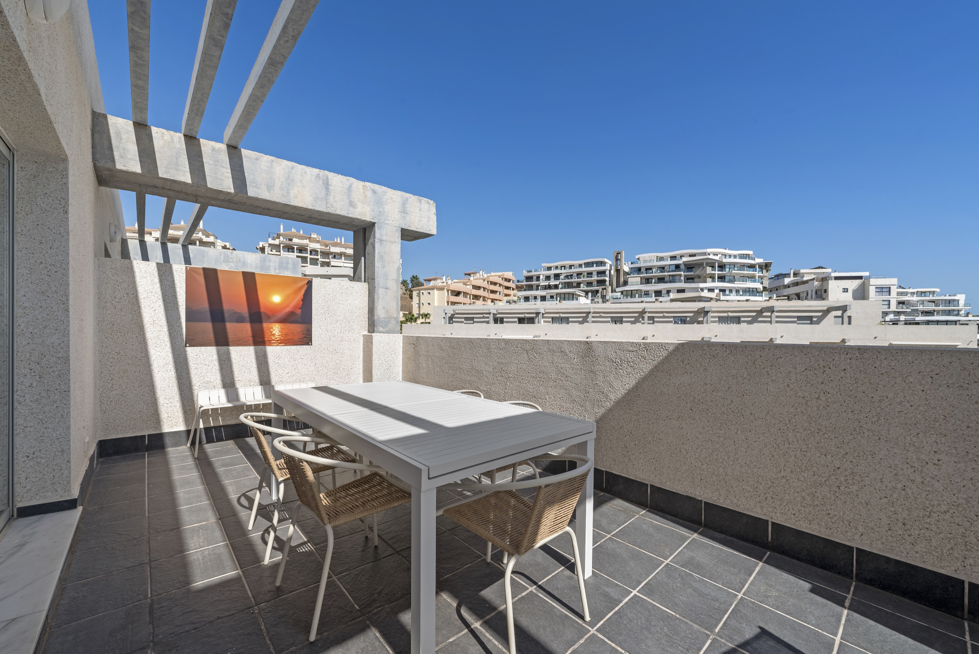 The penthouse's expansive terraces on both sides of the apartment offer breathtaking views of the sea, mountains, communal gardens, and pool area. These outdoor spaces are perfect for al fresco dining and relaxation, making the most of the region’s enviable climate. With air conditioning, high-speed internet, and excellent overall condition, this property promises a luxurious and comfortable lifestyle in one of the Costa del Sol’s most desirable locations.