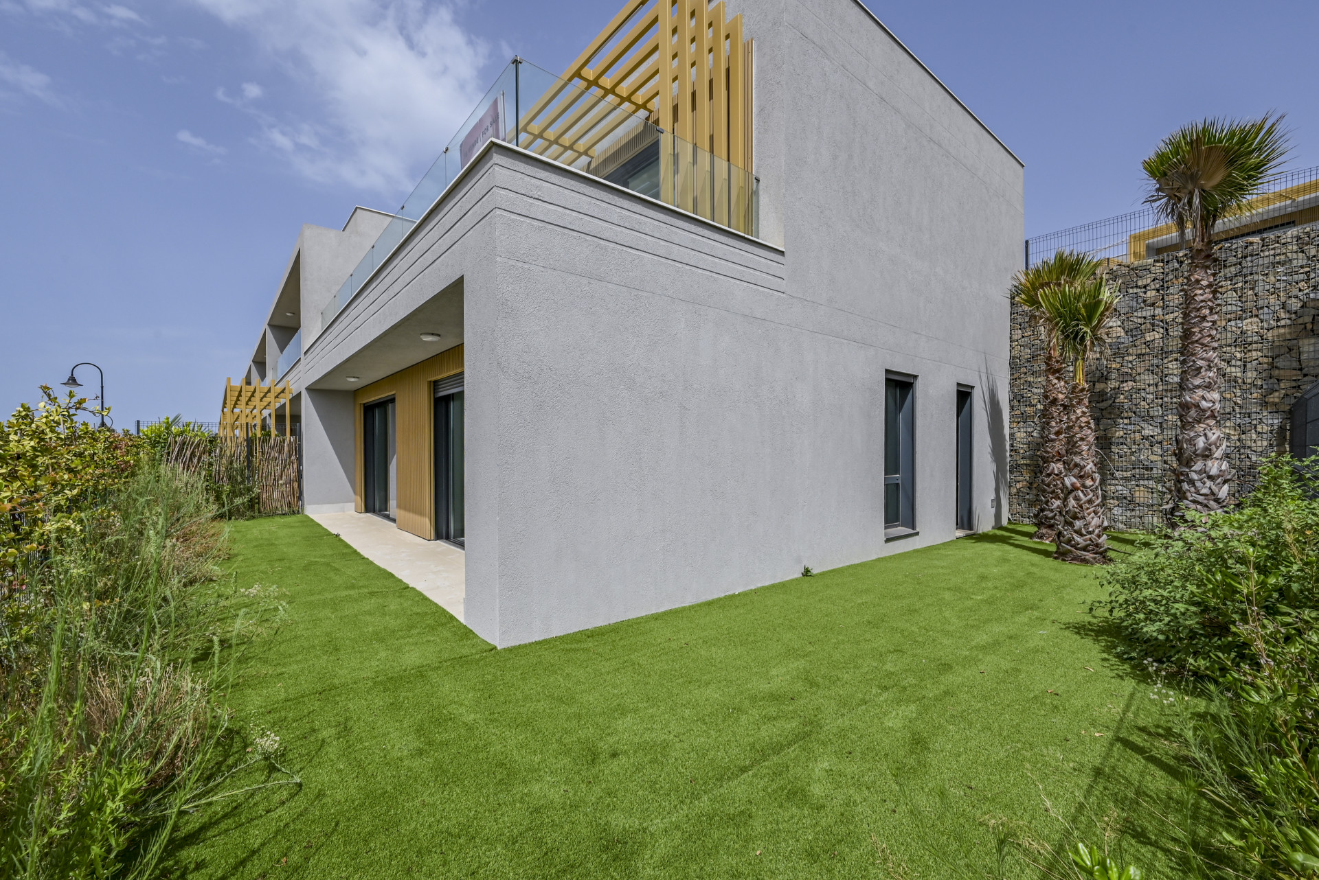 Vid entrén finns en privat parkeringsplats utrustad med laddningsstation för elbil. Boende har tillgång till anlagda trädgårdar, rekreationsområden och en gemensam utomhuspool, samt privilegierad tillgång till det intilliggande sport- och fritidscentret med tennisbanor, spa, gym och mycket mer.